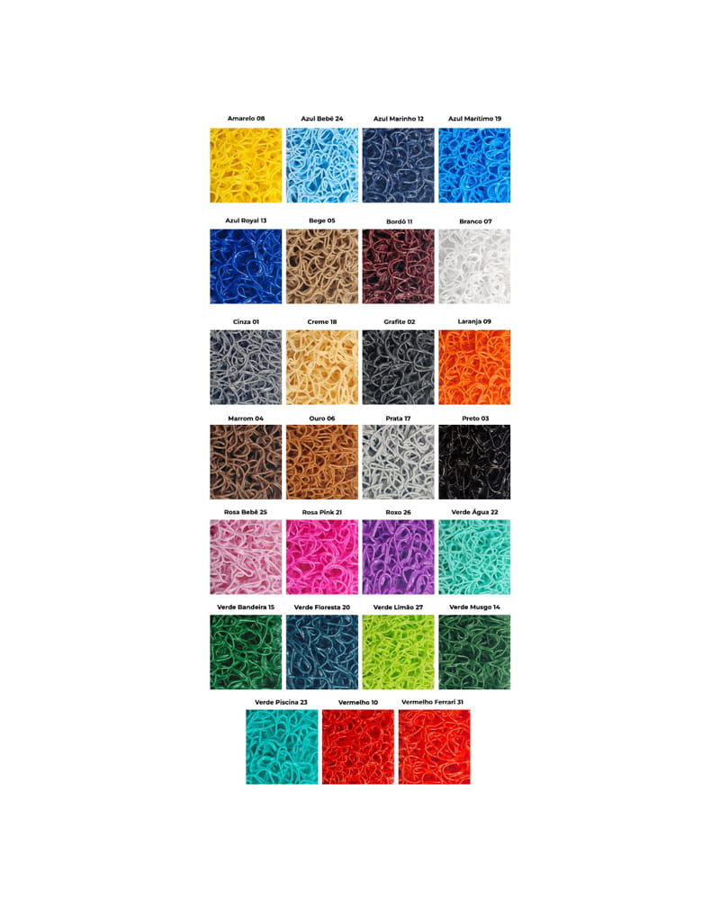 Você pode personalizar seus tapetes nas seguintes cores: